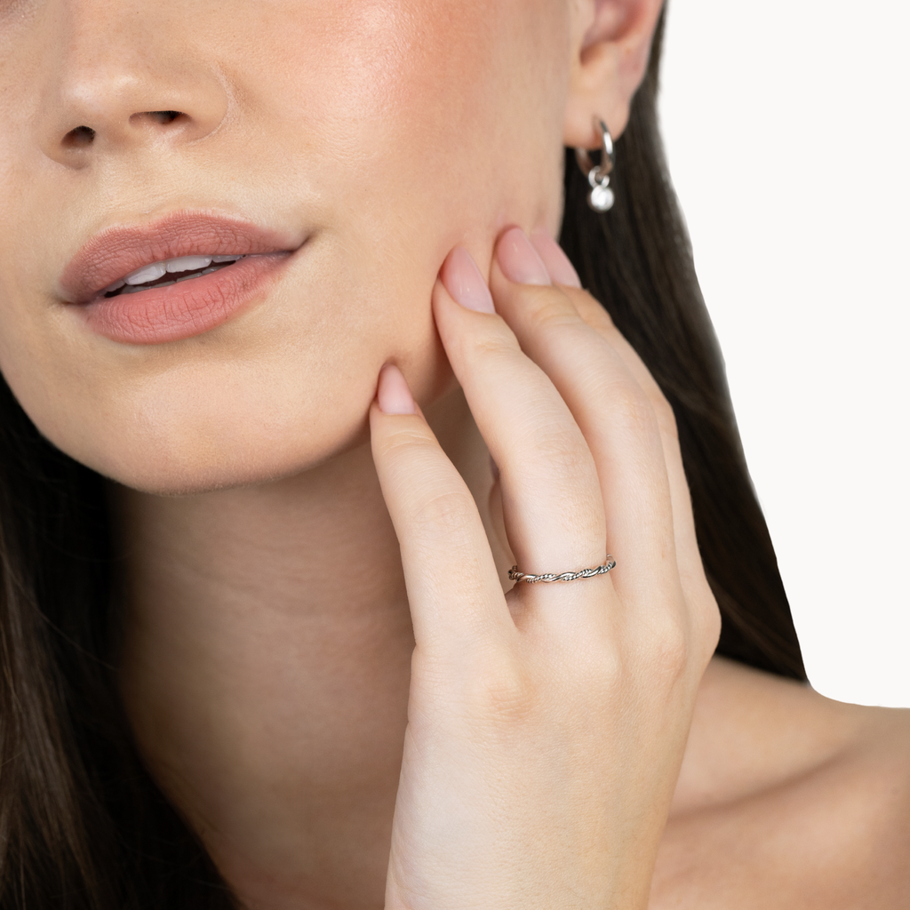 ‣ Anel Ciclo é uma aliança fina e elegante, com duas malhas entrelaçadas de forma subtil e delicada. Uma peça versátil e minimalista, perfeita para criar combinações que contam a tua história. Mais do que um acessório, é um manifesto de poder e propósito.