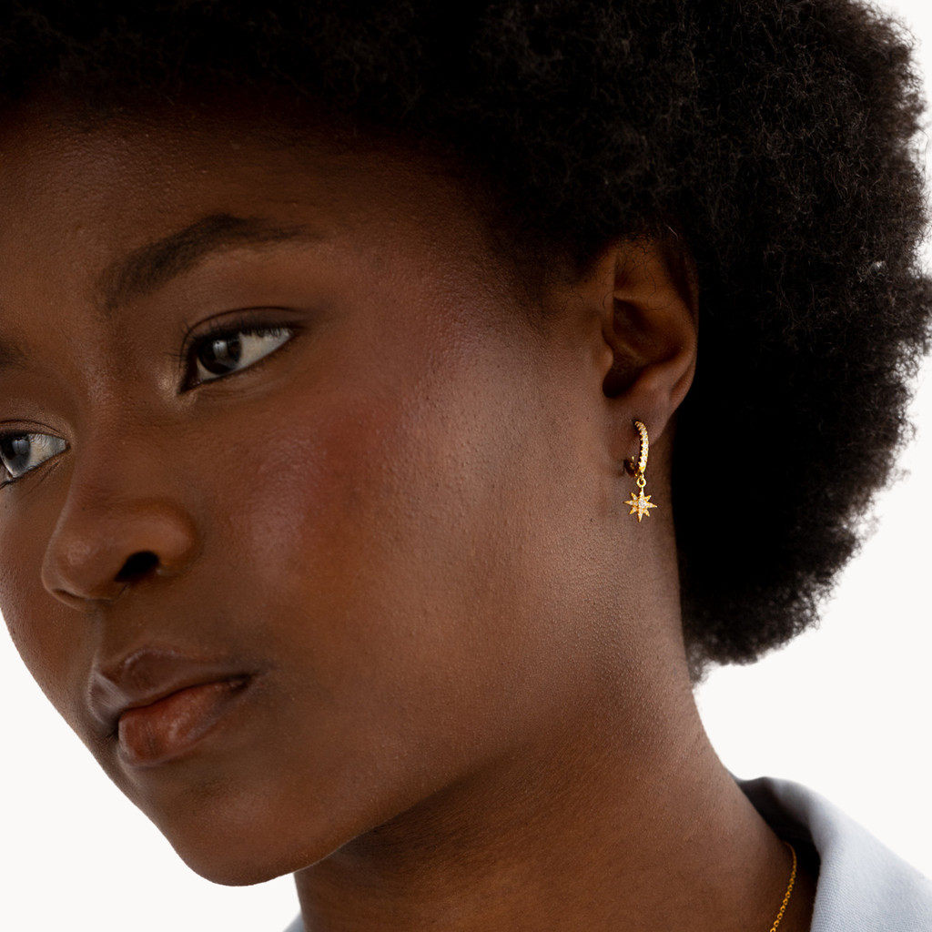 ‣ Argolas Mimosa são um par de argolas mágico, com um pendente em formato de estrela. Podes combinar este modelo com outras peças para o mix and match perfeito.