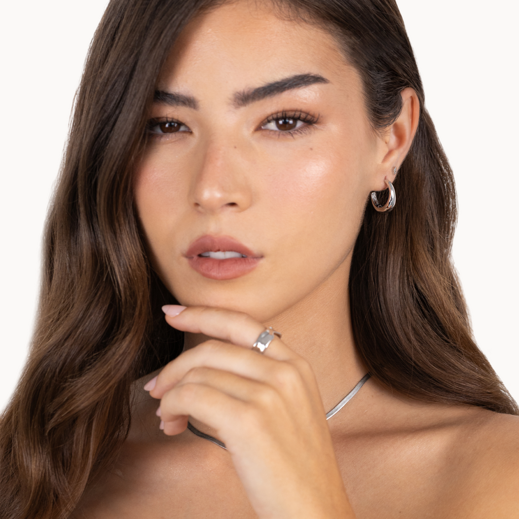 ‣ Argolas Mestre são um par de argolas com um formato curvado e alongado, destacando-se pela sua elegância e acabamento liso. A simplicidade do seu design permite misturar diferentes tons metálicos para criar o mix and match perfeito. A estratégia do contraste promove combinações irreverentes e modernas.