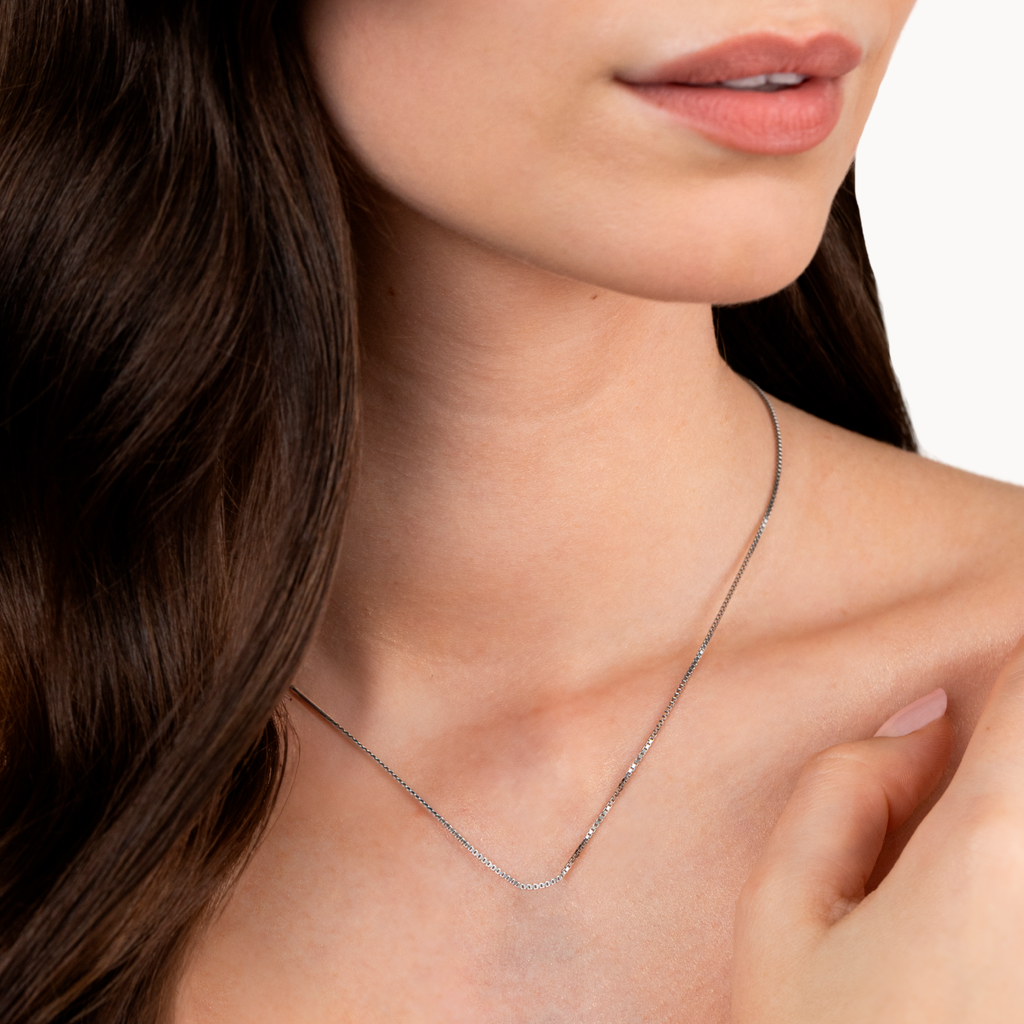 ‣ Colar Aura é um colar minimalista com uma malha veneziana, caracterizada por elos pequenos quadrados, alinhados de forma simétrica. Podes combinar este modelo com outras peças para o mix and match perfeito.
