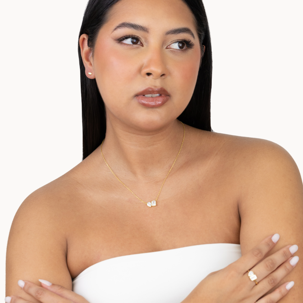 ‣ Colar Brigitte é um colar com uma malha delicada, tendo como destaque duas zircónias lapidadas em formato de gota e quadrado, que remetem a um look mais irreverente, porém intemporal. A peça ideal para qualquer ocasião. Podes combinar este modelo com outras peças para o mix and match perfeito.