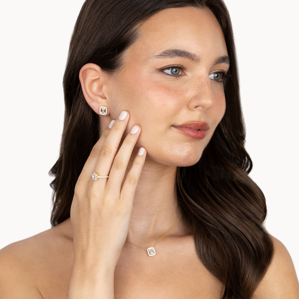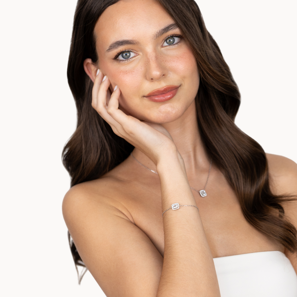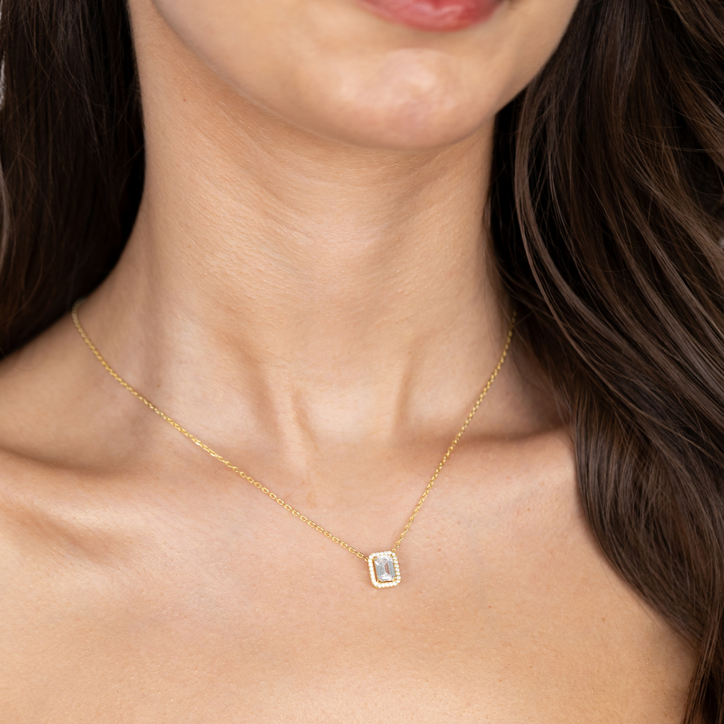 ‣ Colar Natalie é um colar com uma malha delicada, com destaque para uma pedra central lapidada em formato de quadrado com os cantos arredondados e rodeada por pequenas pedras sintéticas. A peça ideal para um look mais clássico e intemporal. Podes combinar este modelo com outras peças para o mix and match perfeito.