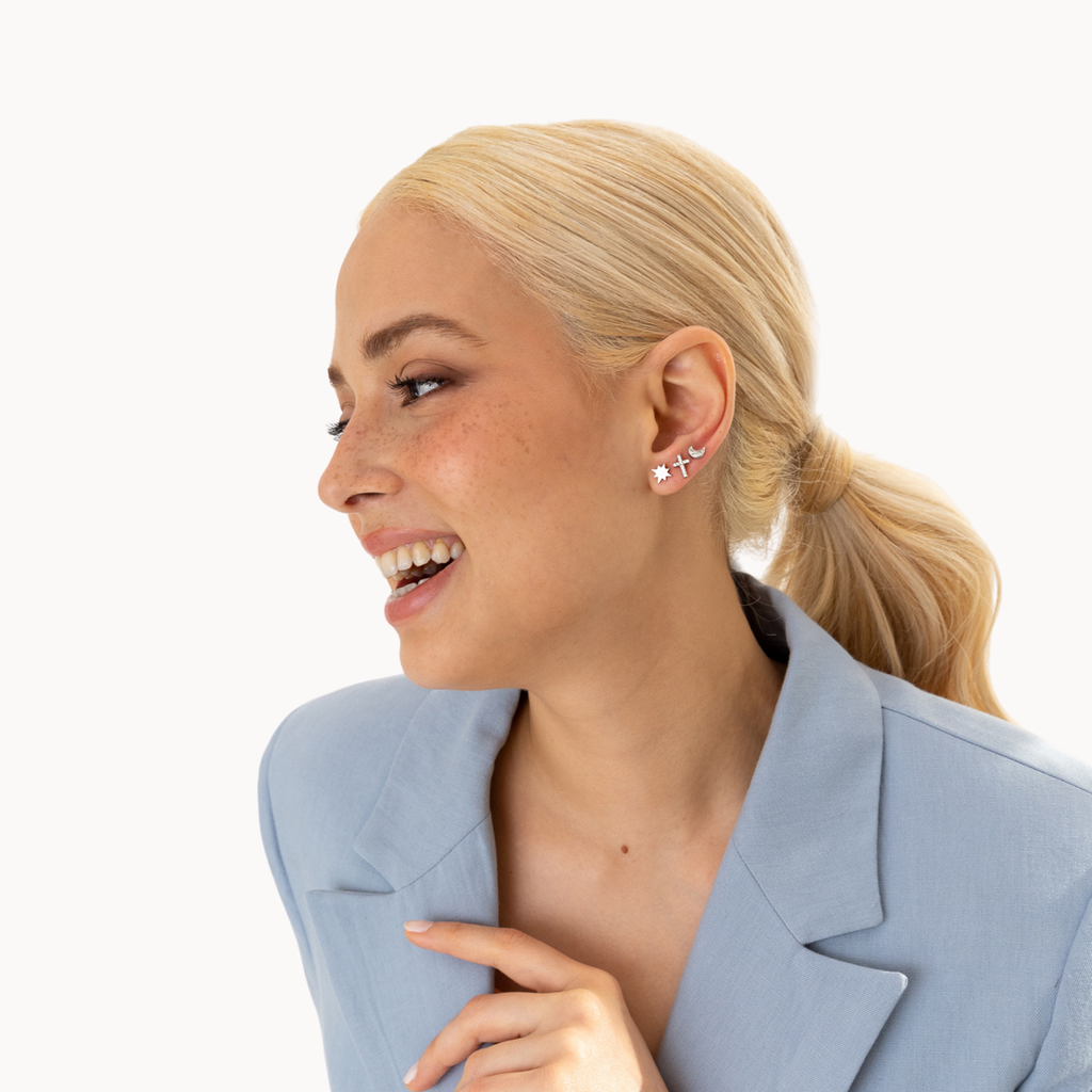 ‣ Piercing Luna é um piercing barbell, com abertura de rosca traseira, vendido à unidade. Uma peça mística e irreverente, em formato de lua, adornada com pedras sintéticas. Pode ser usado em qualquer furo: lóbulo, tragus e hélix. Podes combinar este modelo com outras peças para o mix and match perfeito.