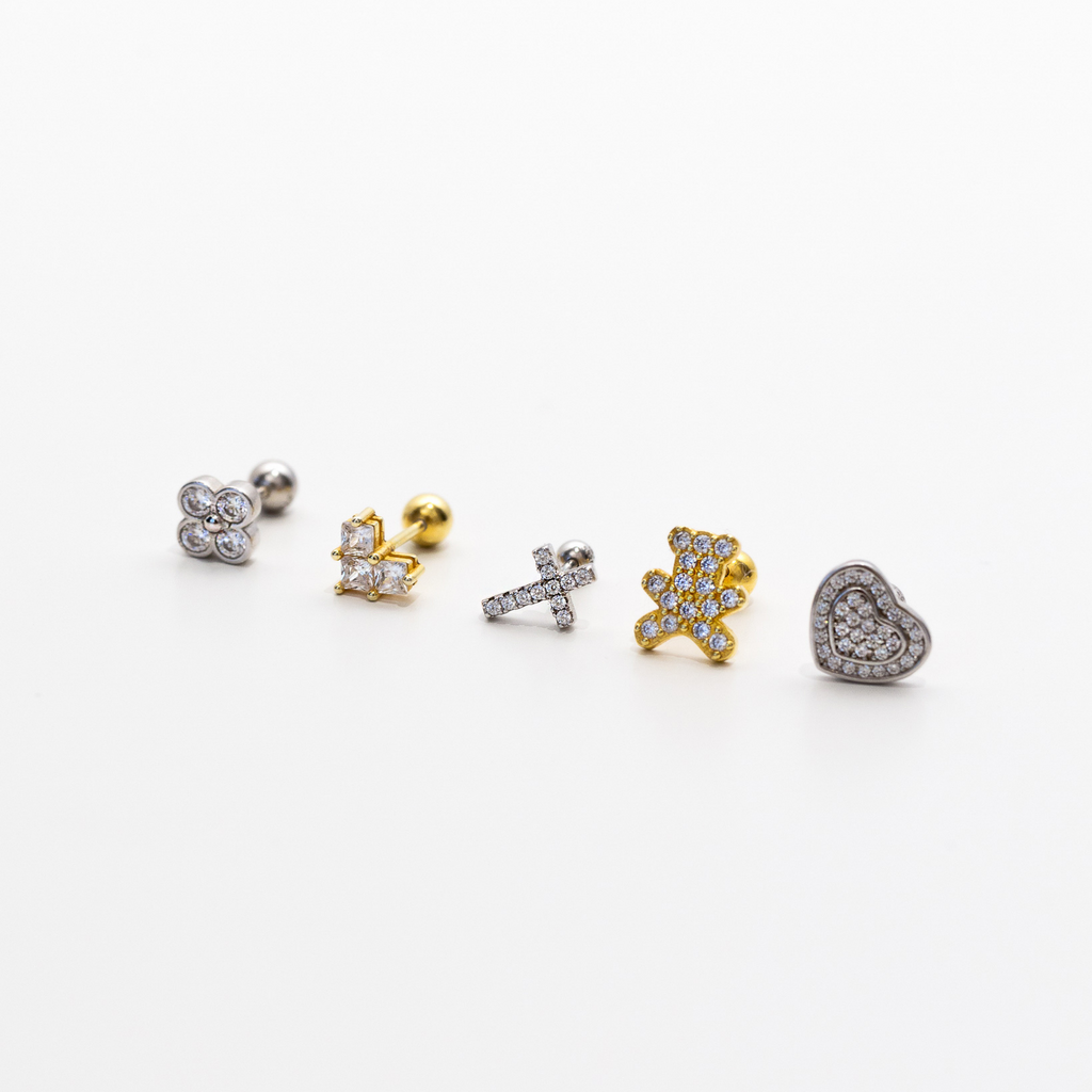 ‣ Piercing Platónico é um piercing barbell, com abertura de rosca traseira, vendido à unidade. Uma peça romântica e vistosa, em formato de coração, revestida com pedras sintéticas. Pode ser usado em qualquer furo: lóbulo, tragus e hélix. Podes combinar este modelo com outras peças para o mix and match perfeito.