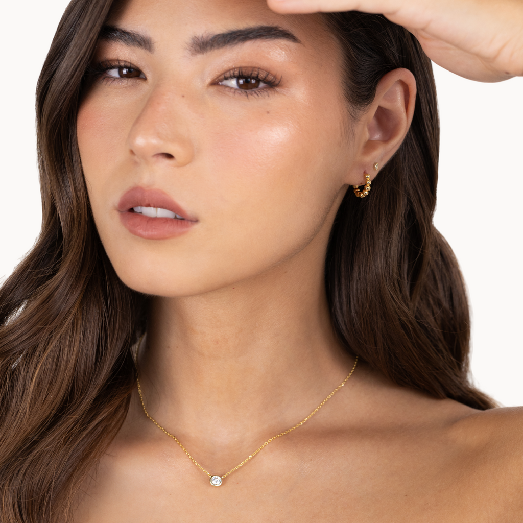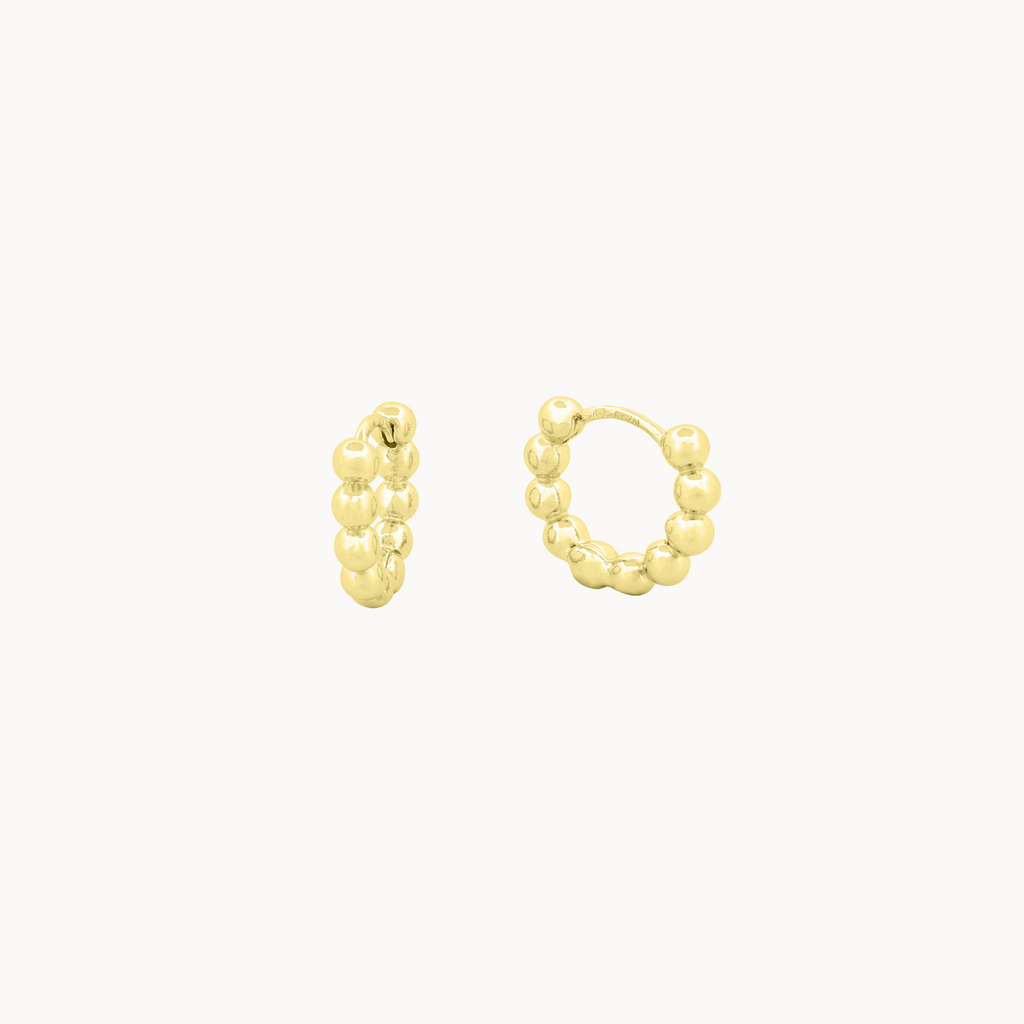 ‣ Argolas Gambito são um par de argolas elegantes e diferenciadas, adornadas com pequenas esferas ao longo do aro. Estas argolas apresentam um fecho click, garantindo praticidade e segurança na utilização. A simplicidade do seu design permite misturar diferentes tons metálicos para criar o mix and match perfeito. A estratégia do contraste promove combinações irreverentes e modernas.
