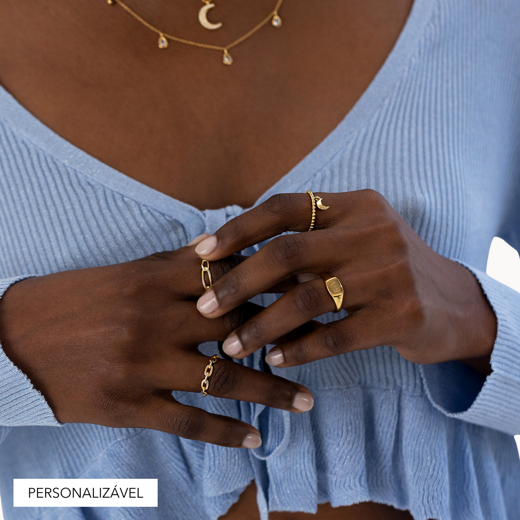 ‣ Anel Alpha Quadrado é um anel em formato de brasão, com uma linha minimalista. Podes combinar este modelo com outras peças para o mix and match perfeito.