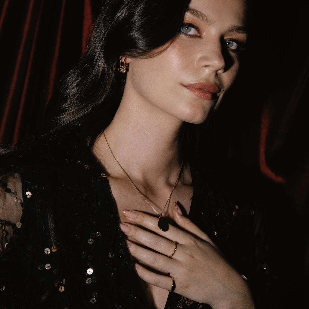 ‣ Coffret Aura Elipse é um colar composto por fio com malha veneziana e uma medalha irregular, com formato oval, que pode ser personalizada tornando-se uma extensão da tua essência. Este coffret é complementado pelo pendente com birthstones, que representam cada mês do ano.