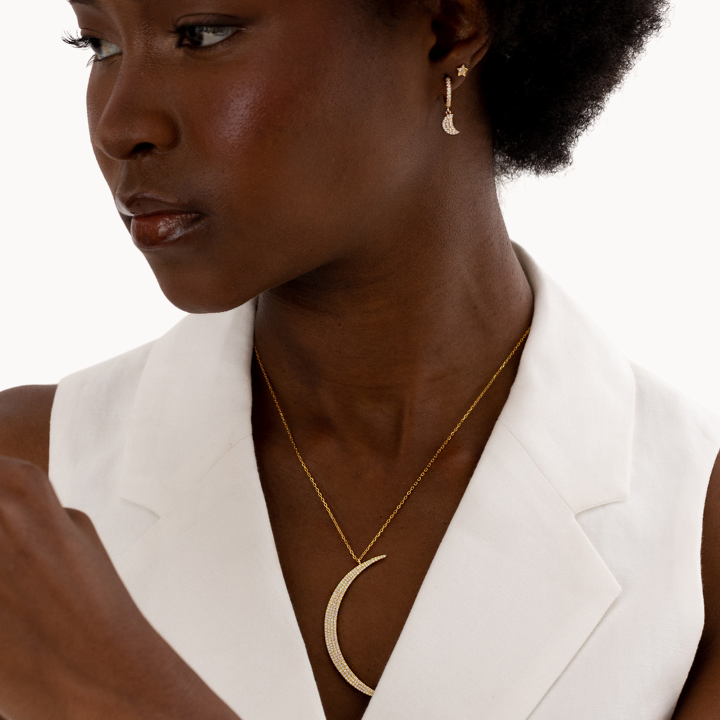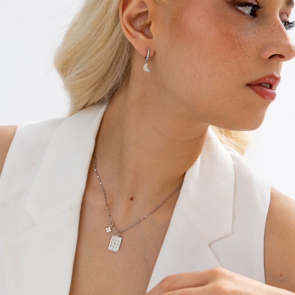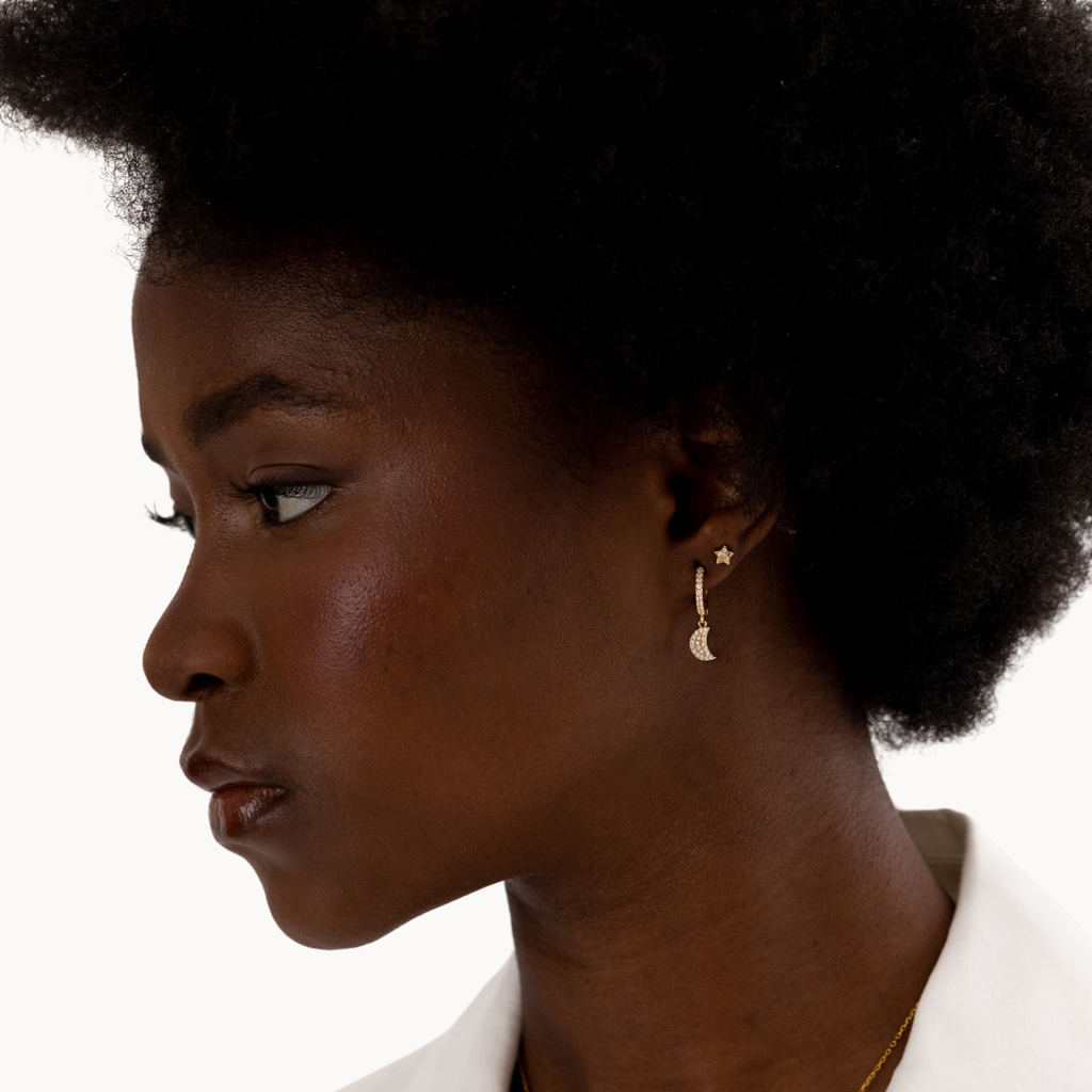 ‣ Argolas Ayla são um par de argolas delicado, com um pendente em formato de lua. Podes combinar este modelo com outras peças para o mix and match perfeito.