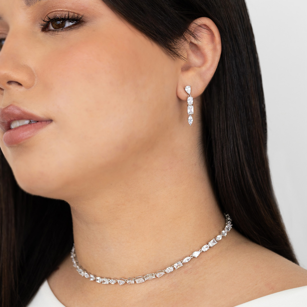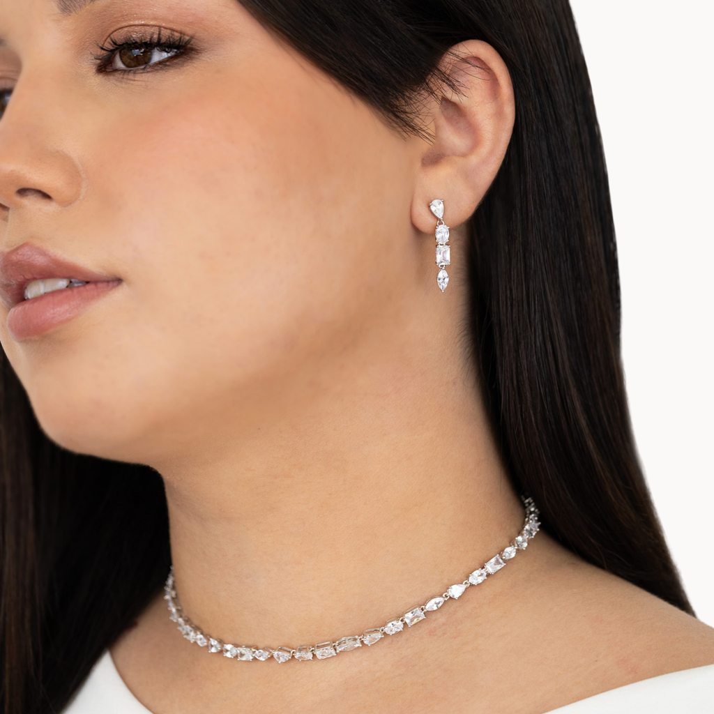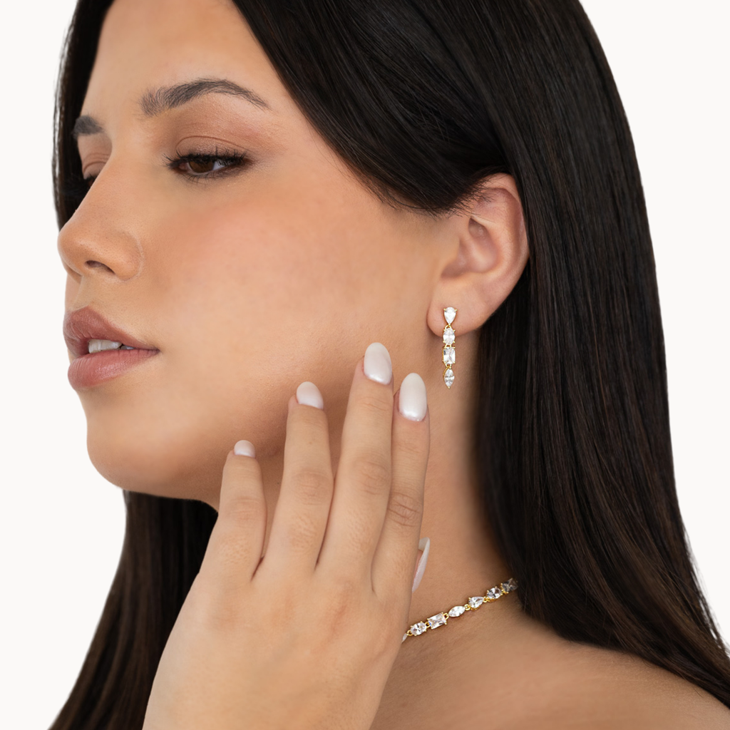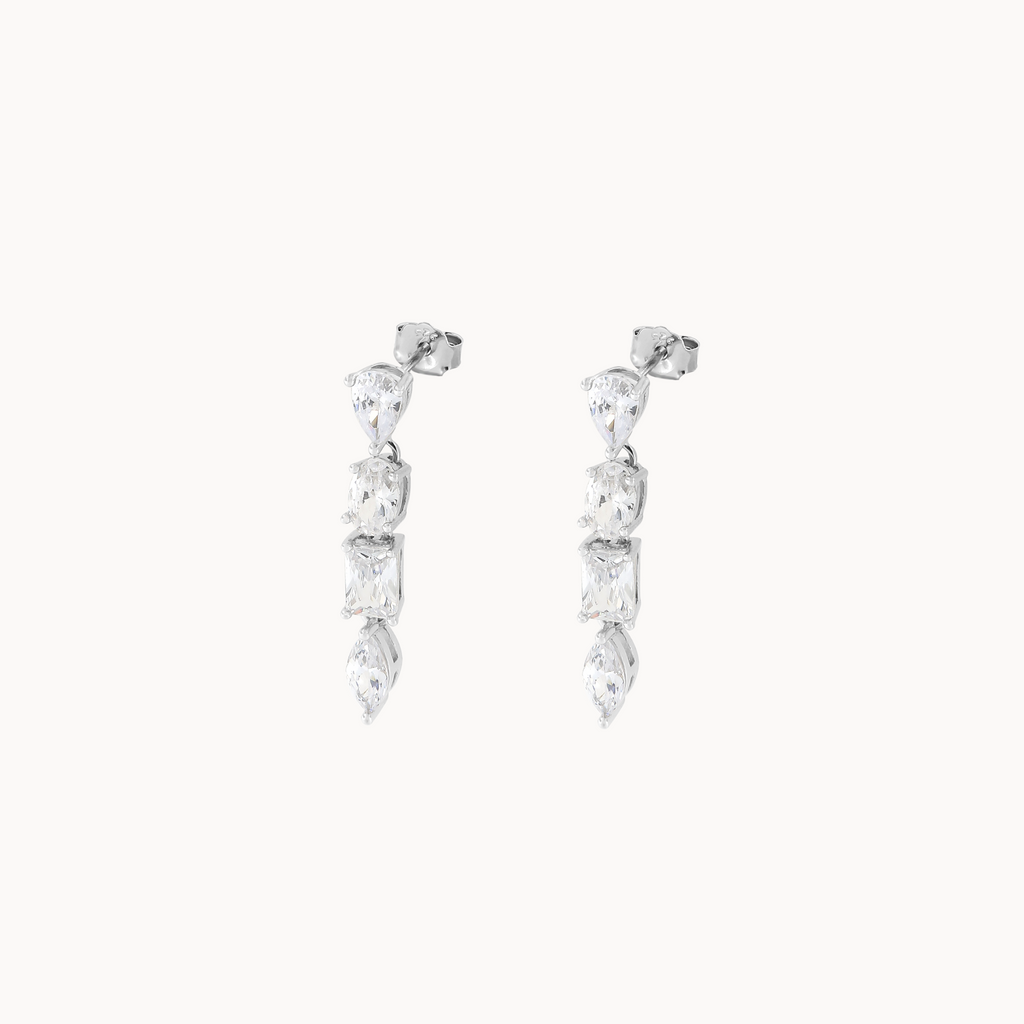 ‣ Brincos Griet são um par de brincos pendentes, constituídos por quatro delicadas zircónias lapidadas em diferentes formatos: navete, pendeloque, oval e tesoura. Uma peça clássica e cheia de brilho, ideal para marcar qualquer ocasião. Podes combinar este modelo com outras peças para o mix and match perfeito.