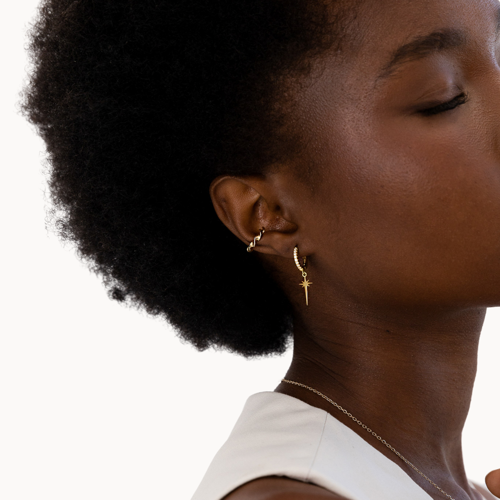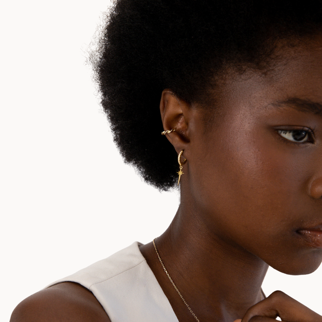 ‣ Argolas Spica são um par de argolas revestido com zircónias cúbicas e um pendente em formato de estrela. Podes combinar este modelo com outras peças para o mix and match perfeito.