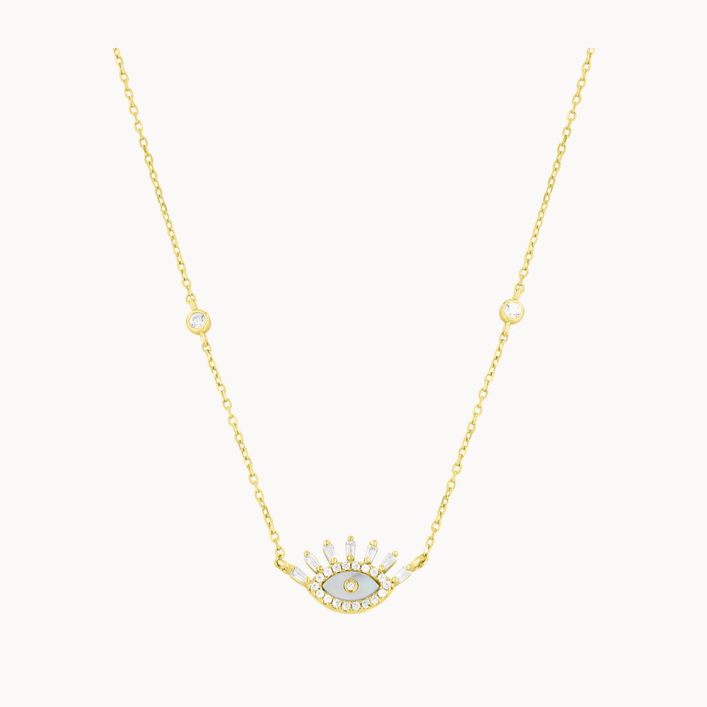‣ Colar Cristal é um colar com uma malha fina e um olho turco, adornado com zircónias cúbicas. Um símbolo de proteção, ideal para marcar uma ocasião especial. Podes combinar este modelo com outras peças para o mix and match perfeito.